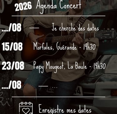 Je suis autonome en matériel, son & lumières pour une salle de moins de 150 personnes et je peux aussi jouer en extérieur. Alors on se voit bientôt pour un concert Folk rythmé aux couleurs du Sud Américain.